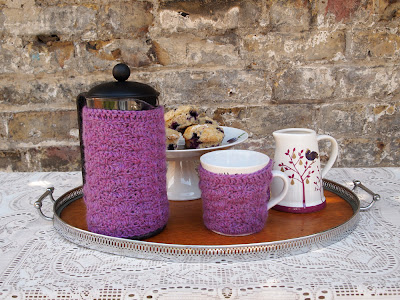 NOW...I had this brilliant plan involoving photographing my new crochet coffee cosy with my homemade muffins. I was so pleased when they all came together and I spent all morning on my photo shoot. Trouble is I'm not too happy about the finished product. Still here is a first peek at the photo.